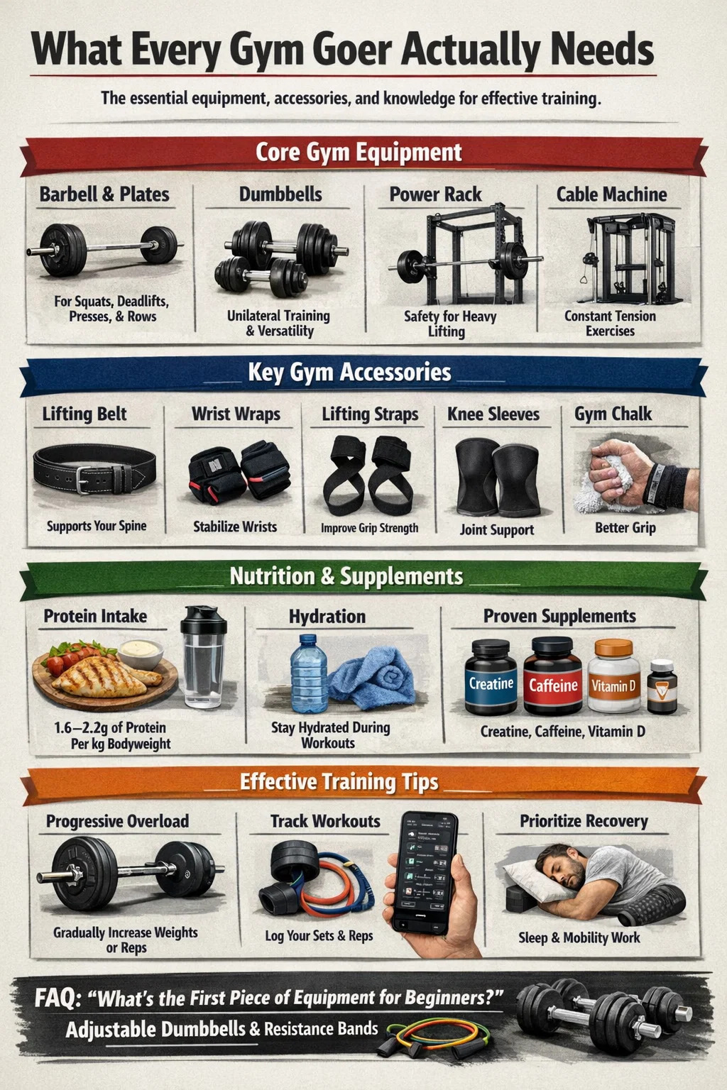 This guide breaks down everything a gym goer needs in practical, specific terms. No vague advice about "staying motivated." Just a clear look at the equipment, accessories, habits, and knowledge that separate people who actually improve from those who spin their wheels for months.