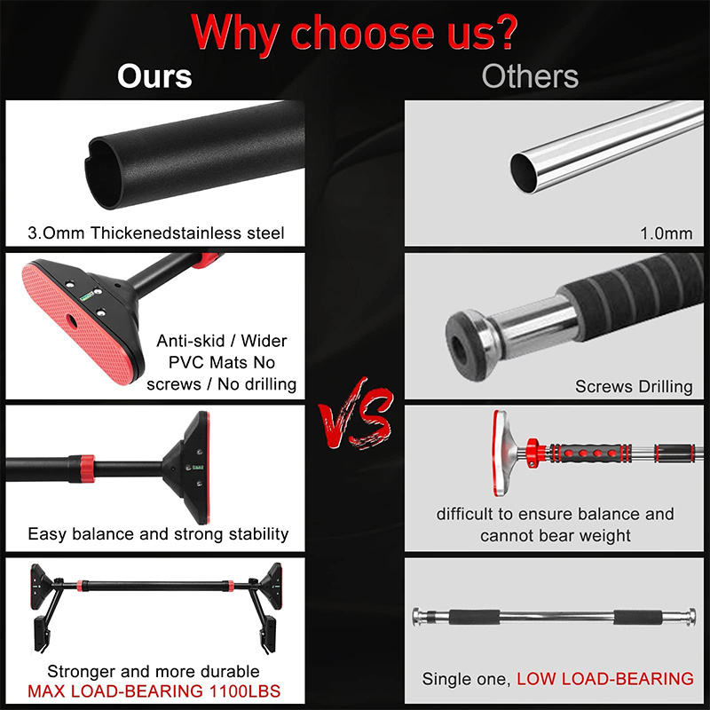 5. High safety: Basic pull-up bars are usually made of high-strength materials, such as high-quality steel or alloy materials, to ensure their stability and durability. Reasonable structural design and installation guidance can reduce risks during exercise and ensure the safety of trainers.