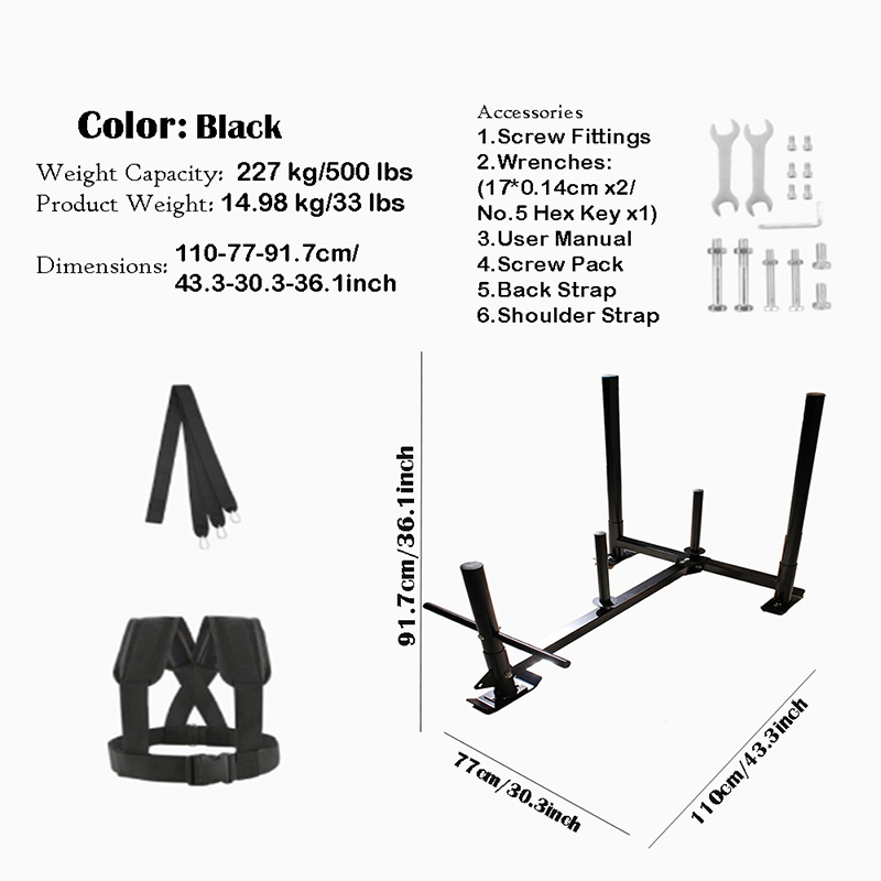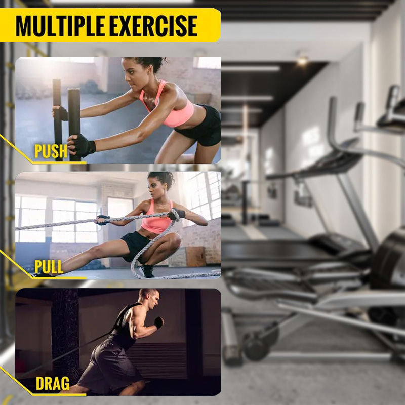 The strength training sled can perform a variety of training movements, such as pushing, pulling, dragging, etc. These movements can exercise the main muscle groups of the whole body, including the legs, core, back, chest, and arms.