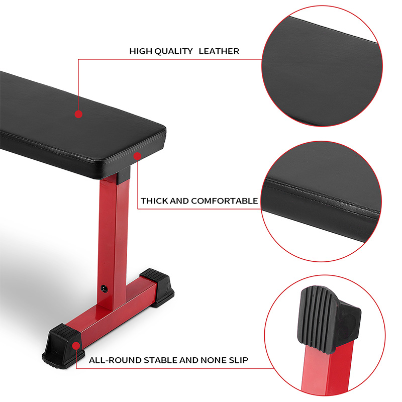 2. Versatility and flexibility: Although the bench has a flat design, it can still be used for a variety of training movements, such as bench presses, dumbbell flies, sit-ups, etc. The bench's compact design makes it easy to move and store in a gym or home fitness environment, adding flexibility to use.