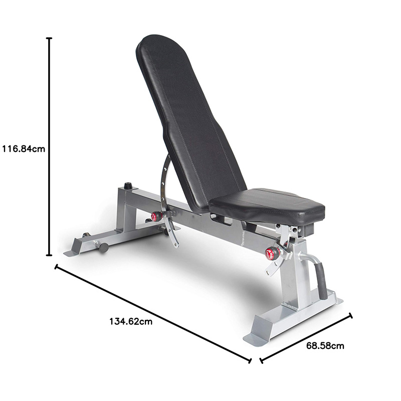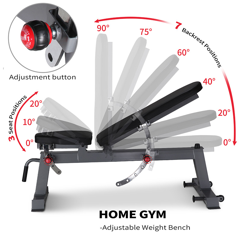 1. Versatility: The bench design is flexible and can meet a variety of training needs, including but not limited to bench press, squat, fly, deadlift, and other compound movements. By adjusting the angle and height of the bench, it can adapt to the body shape and training goals of different trainers and achieve personalized training plans.